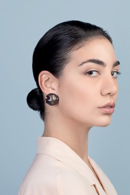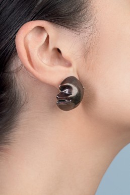 Earrings, Shibuichi, Gold, Diamonds, 2.5 cm, 8.3 gr (x2)